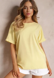 Żółty Bawełniany T-shirt Oversize z Krótkim Rękawem i Dłuższym Tyłem Zanimara