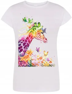 Żyrafa Damski Kolorowy T-shirt Nadruk Lato R.M
