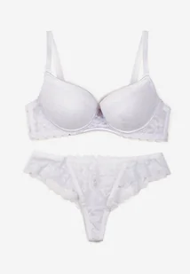 Biały Koronkowy Komplet Bielizny Biustonosz Usztywniony Push Up i Stringi Jasminesa