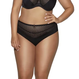 Figi damskie z tiulową wstawką w zygzaki AV 2103 czarne 3XL Figi AV 2103 to eleganckie damskie majtki w kolorze czarnym, ozdobione tiulową wstawką w zygzaki....