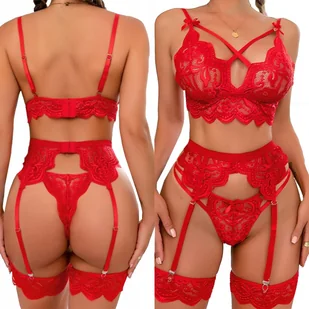 KOMPLET 5 CZĘŚCI SEK SOWNA BIELIZNA EROTYCZNA STANIK KORONKA TOP FIGI ROZMIAR S/M