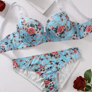 Komplet bielizny z motywem kwiatów - Niebieski XL