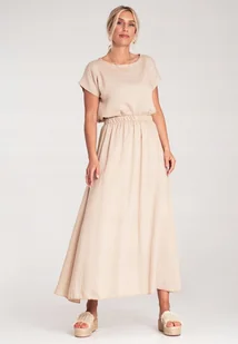 Komplet w stonowanym, beżowym odcieniu to ponadczasowa propozycja na lato. Luźna bluzka z opadającymi rękawami i rozkloszowana spódnica maxi tworzą wygodną, ...
