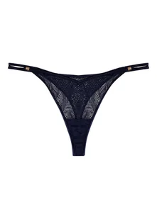 Niebieskie stringi Osaka powstały z płaskiej koronki typu allover o subtelnym, organicznym wzorze. Ich delikatny charakter podkreślają wykończenia z satynowej lamówki – delikatnie mieniące się podwójne paseczki po bokach. W tym modelu zastosowaliśmy także biżuteryjne ozdoby w kolorze złota, które odznaczają się nowoczesnym designem.