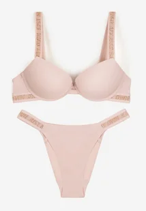 Różowy Komplet Ozdobiony Napisami z Biustonoszem z Efektem Push-Up i Majtkami Bralicia