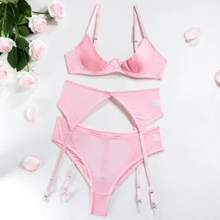 Seksowny komplet bielizny z naklejkami na sutki - Różowy L