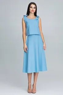 Stylowy KOMPLET damski | bluzka z kokardami prosta spódnica | niebieski XL