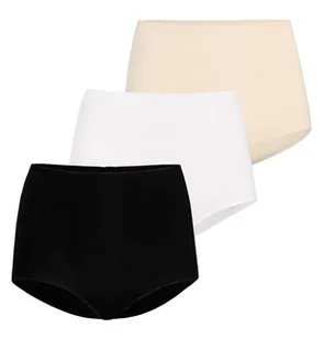 - 3-pack majtek bambusowych z wysokim stanem- Majtki w kolorze czarnym, beżowym i białym- Wykonane z materiału z dodatkiem włókna bambusowego- Kryją kobiece ...