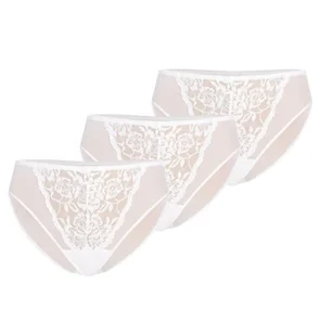 - Zestaw damskich majtek klasycznych w kolorze białym- Wykonane są z delikatnej prześwitującej siatki i koronki- Majtki są bardzo wygodne i komfortowe w użyt...