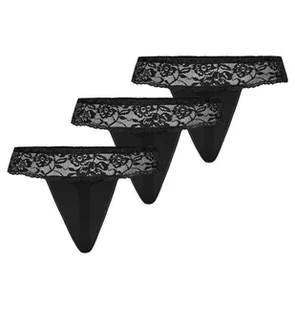 - Zestaw damskich koronkowych stringów z siatką- W trójpaku znajdują się trzy sztuki stringów - Koronka o motywie kwiatowym idealnie oplata biodra- Wielopaki...