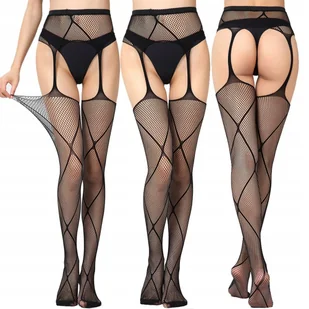 Rajstopy Wzorzyste Z Pasem Jak Pończochy Stylowe Stripanty Kabaretki Czarne S/M M/L