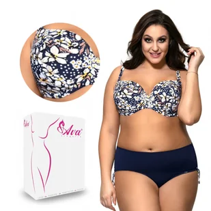 Biustonosz SK 114 Full Cup: Białe Kwiaty Magnolii i Stokrotki na Granatowym Tle: Wzór biustonosza charakteryzuje się białymi kwiatami magnolii i stokrotek na...
