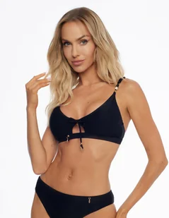 Stylowo i ze smakiem – oto jak warto prezentować się na plaży lub na basenie! Sięgając po czarną górę od bikini typu trójkąt Sunrise, bez wątpienia będziesz wyglądać niezwykle elegancko. Czarna góra typu trójkąt wyróżnia się ozdobnymi koralikami na ramiączkach oraz łączeniem w formie kokardki. Postaw na szyk na plaży!