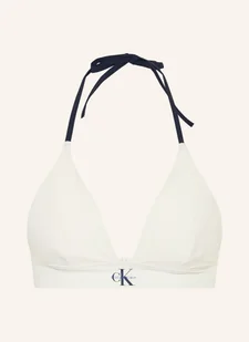 Bez fiszbin. Wyjmowana wkładka. Bez fiszbin bocznych. Nadruk marki. Dwukolorowe wykończenie. Zapięcie na haftkę. Wiązanie na karku. Szybkoschnący materiał