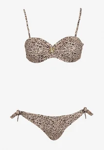 Ciemnobeżowe Dwuczęściowe Bikini Góra z Regulowanymi Ramiączkami Ozdobiona Metalową Klamrą Dół Majtki Typu Figi Wiązane po Bokach Zelmarie