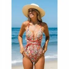 Jednoczęściowy kostium kąpielowy z nadrukiem paisley i wiązaniem