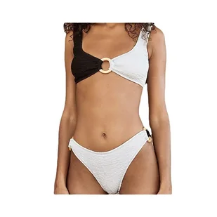 Czarno-Biały Dwuczęściowy Strój Kąpielowy Z Ozdobnym Kółeczkiem Bikini L