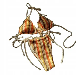 Dwuczęściowy dzianinowy strój kąpielowy z wiązaniami Letnia atmosfera w stylu boho - ten strój kąpielowy łączy ciepłe odcienie i nowoczesną fakturę. Aukcja d...