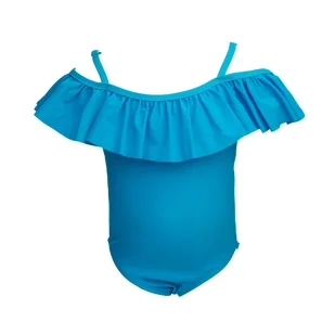 Dziewczęcy kostium kąpielowy jednoczęściowy z falbanką niebieski Mariss