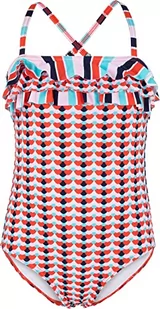 Fashy Dziewczęcy kostium kąpielowy z falbankami, czerwono-jasnoniebieski, różowy, kolorowy, 104 cm