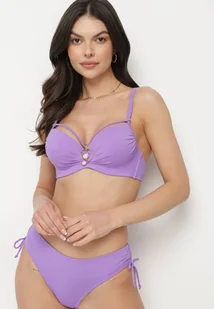 Fioletowe Bikini Biustonosz z Aplikacją i Majtki Figi ze Ściągaczami Ulosella