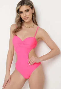 Fuksjowy Strój Kąpielowy Jednoczęściowy z Wycięciami Po Bokach i Odkrytymi Plecami Sovantia