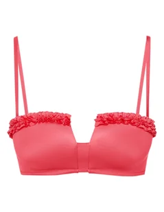 Wyróżnij się na plaży z bikini Godlike w intensywnym różowym kolorze! Ten model przyciąga uwagę nie tylko kolorem, ale też detalami – marszczona falbanka zdobiąca górną linię miseczek nadaje mu wyjątkowo zmysłowy charakter. Usztywnione miseczki z efektem push-up pięknie unoszą biust i modelują dekolt, a delikatne wycięcie między miseczkami dodaje całości lekkości. Ramiączka są regulowane, a zapięcie z tyłu zapewnia wygodę podczas noszenia. Model wpisuje się w najmodniejsze trendy plażowe sezonu – idealny wybór dla kobiet, które cenią modę i kobiecość nawet na plaży. efekt push-up i usztywnione miseczki marszczona falbanka jako ozdoba nowoczesne wycięcie między miseczkami Skład materiału: