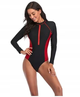 Jednoczęściowy Czarno-Czerwony Strój Kąpielowy Długi Rękaw Zamek Xl