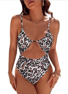 Jednoczęściowy seksowny strój kąpielowy z dekoltem panterka z wycięciami L
