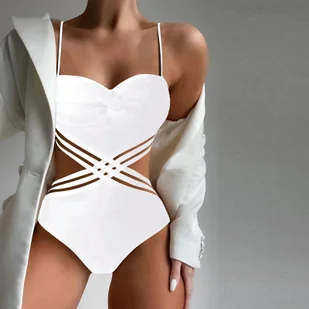 Jednoczęściowy strój kąpielowy na cienkich ramiączkach - Biały M