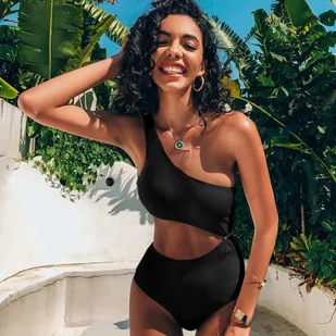 Jednoczęściowy strój kąpielowy na jedno ramię - Czarny M