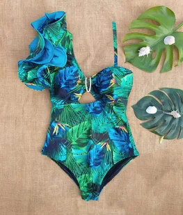 Jednoczęściowy strój kąpielowy z falbaną - Niebieski L