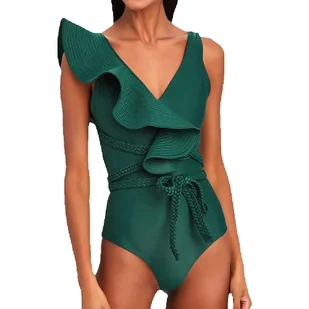 Jednoczęściowy strój kąpielowy z wiązaniem - Zielony XL