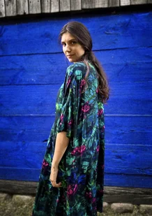 KIMONO długie / SUKIENKA kopertowa/ NARZUTKA/ szlafrok, szmaragdowy print NENUFARY i ważki (100% wiskoza)