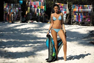 Seksowne bikini - czyli dwuczęściowy kostium kąpielowy z biustonoszem wiązanym zarówno na szyi, jak i na plecach i figami wiązanymi po obu stronach bioder. W...