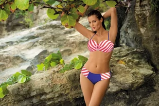 Dwuczęściowy kostium kąpielowy Ariana M-345 w stylu "marine" - na piasku będzie wyglądał mega elegancko. Bardzo ładną tkaninę w szerszy, marynarski prążek pe...