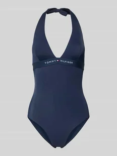 Kostium kąpielowy damski TOMMY HILFIGER;Efekt: jednolity kolor;krój: Wiązanie na szyi;Fiszbiny: bez fiszbin;Detale miseczki: wyprofilowana, z podszewką, wyjmowana;Aplikacja: Nadruk z logo;Wykończenie materiału: Stretch
