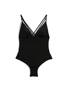 Koton Damski kostium kąpielowy z dekoltem w serek, spaghetti, paski, z podszewką, detal, jednoczęściowy, czarny (999), 36