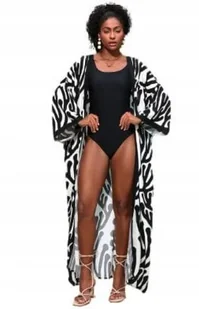 LETNIE KIMONO PLAŻOWE NARZUTKA CZARNO-BIAŁE WZORY PAREO WIĄZANE NA PLAŻĘ