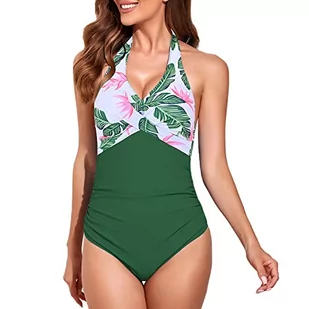 Little Hand Damski kostium kąpielowy, trójkąt, dekolt w kształcie litery V, paski, wyszczuplające brzuch, jednoczęściowy, moda kąpielowa, strój kąpielowy, 2-zielony kwiat, M