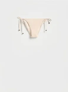 Majtki plażowe z niskim stanem, wykonane z gładkiego materiału.
