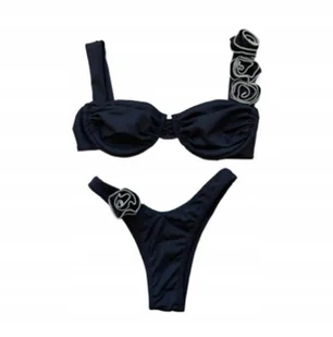 STRÓJ KĄPIELOWY BIKINI DWUCZĘŚCIOWY Z OZDOBNYMI KWIATAMI RÓŻYCZKI L CZARNY