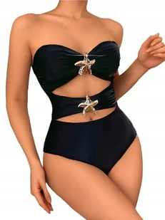 ABSOLUTNY HIT! Damski, jednoczęściowy strój kąpielowy modelujący wycięcia ozdobne klamry Na aukcji sprzedawany jest strój w rozmiarze L w kolorze czarnym Mod...