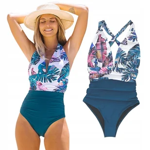 Strój Kąpielowy Jednoczęściowy Kostium Wyszczuplający Damski Niebieski L