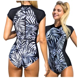 ✨ KOSTIUM KĄPIELOWY JEDNOCZĘŚCIOWY KRÓTKI RĘKAW SURFINGOWY DESKA SUP S ✨ ✨ Nasz jednoczęściowy kostium kąpielowy to idealny strój do uprawiania sportów wodnych! Wygodny krój, wzór w egzotyczne liście i krótkie rękawy sprawiły, że kobiety pokochały ten kostium! ❤️ Poczuj się piękna i pewna siebie! Czarne paski po bokach pięknie modelują i optycznie wysmuklają sylwetkę. Strój wykonany jest z miękkiej i elastycznej tkaniny, która idealnie nadaje się na sezon letni. Usztywniające wkładki świetnie zbierają biust i sprawiają, że pozostaje on na swoim miejscu nawet podczas intensywnych treningów. ✨ SZCZEGÓŁY NASZEGO MODELU przewiewna podszewka na biuście elastyczny materiał okrągłe, wyciągane wkładki bezfiszbinowy krótki rękaw zapięcie na suwak z tyłu stroju majtki o kroju szortów materiał: 82% poliamid, 18% elastan ❕ W naszej aktualnej ofercie posiadamy stroje kąpielowe w rozmiarach zgodnych ze standardową rozmiarówką.
