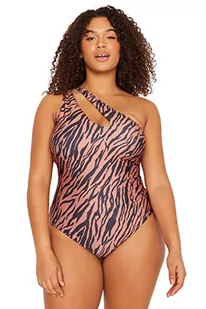 Trendyol Damski strój kąpielowy z dzianiny w dużych rozmiarach, czarno-brązowy, 46, Czarno-brązowy, 44