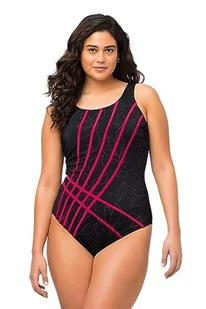 Ulla Popken Damski kostium kąpielowy, bez miękkich miseczek, w paski, czarny, 62 Große Größen
