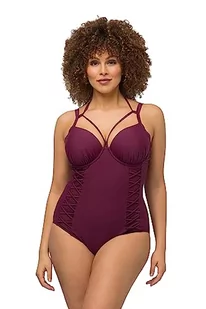 Ulla Popken, Damski kostium kąpielowy z fiszbinami i wiązaniem na szyi, czerwony (Weinrot)