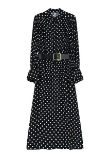 L’abito midi a pois si distingue per la silhouette sofisticata con colletto classico e bottoni frontali. La cintura in vita scolpisce la figura, mentre le maniche lunghe rifinite da volant donano un tocco ricercato. Ideale per contesti cittadini e per chi desidera esprimere il proprio stile con eleganza e personalità. Composizione : 100% Viscosa