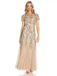 Adrianna Papell Damska sukienka kwiatowa z koralikami, beżowa (ciemnoszara/różowa), rozmiar 10, Beżowy (brązowy/różowy), 38